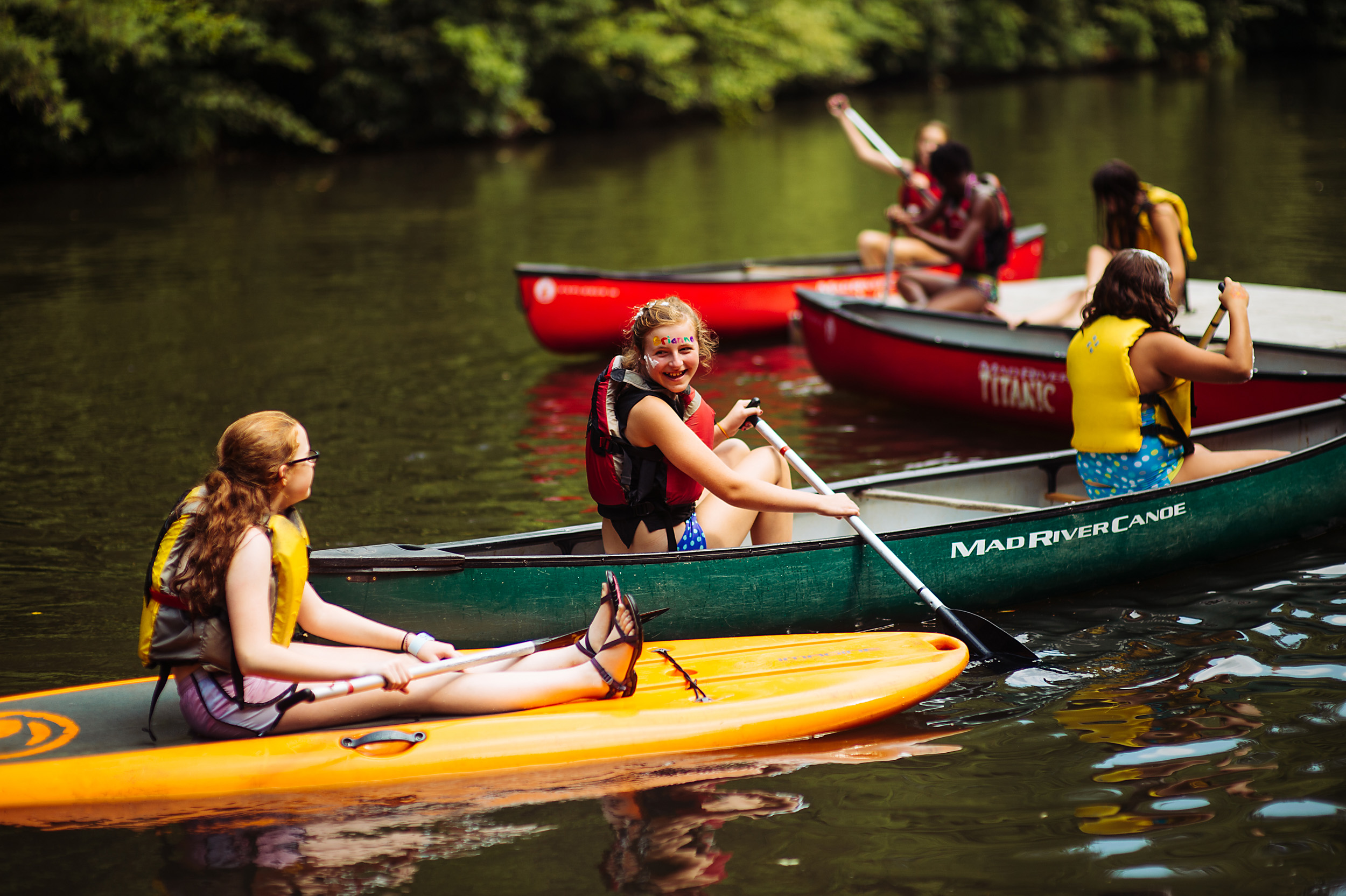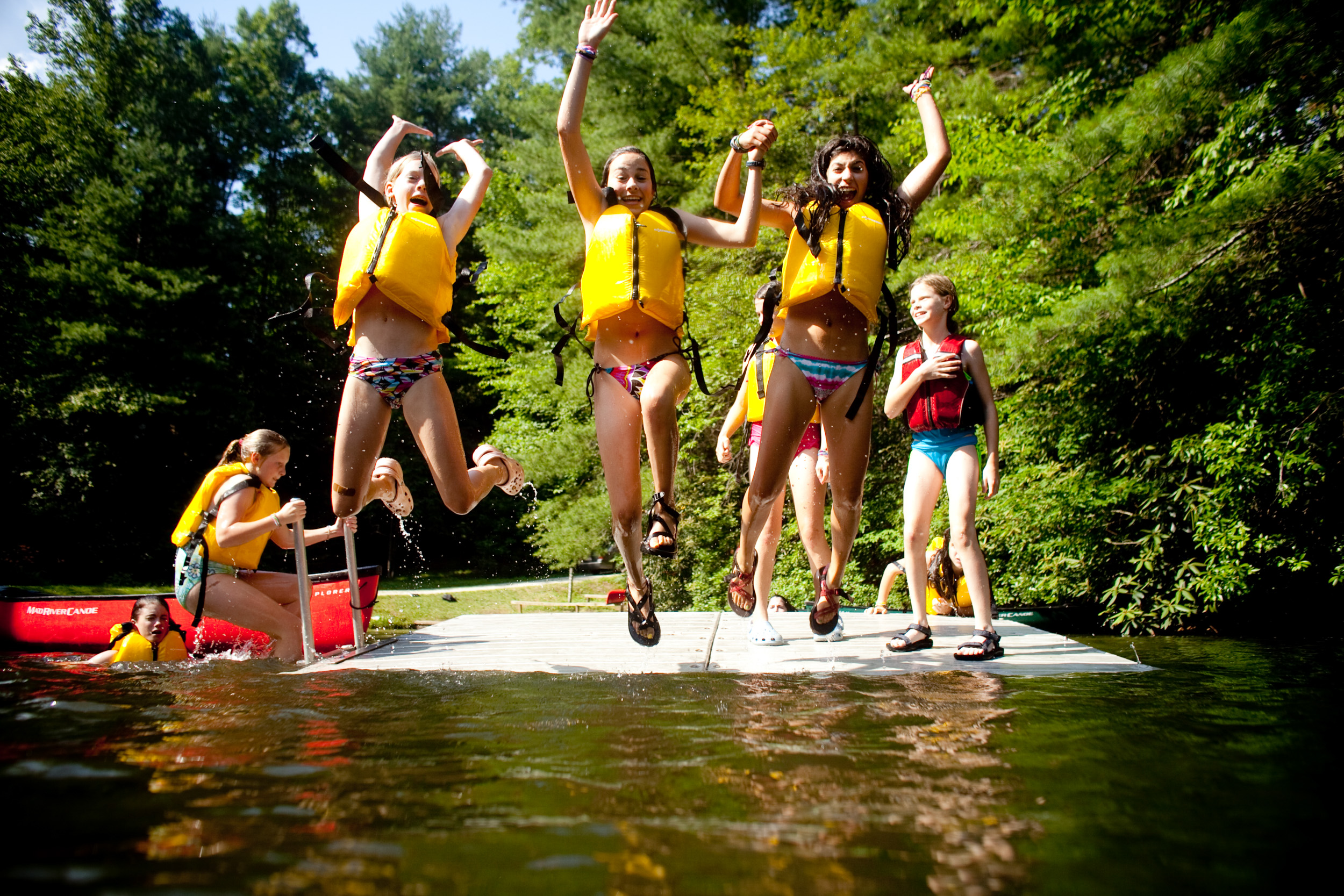 Canoeing classes are offered on a larger separate lake here at Keystone Camp. You’ll learn to handle a canoe using various paddle strokes and how to get back into your boat should you fall out! As you build skills you will have the opportunity to use them on canoe trips out of camp. Your first river trip will be down the French Broad River. As you progress we will go down more difficult rivers such as the Green or Tuckasegee River. We also offer an overnight flat water canoeing trip to gorgeous Lake Jocassee.