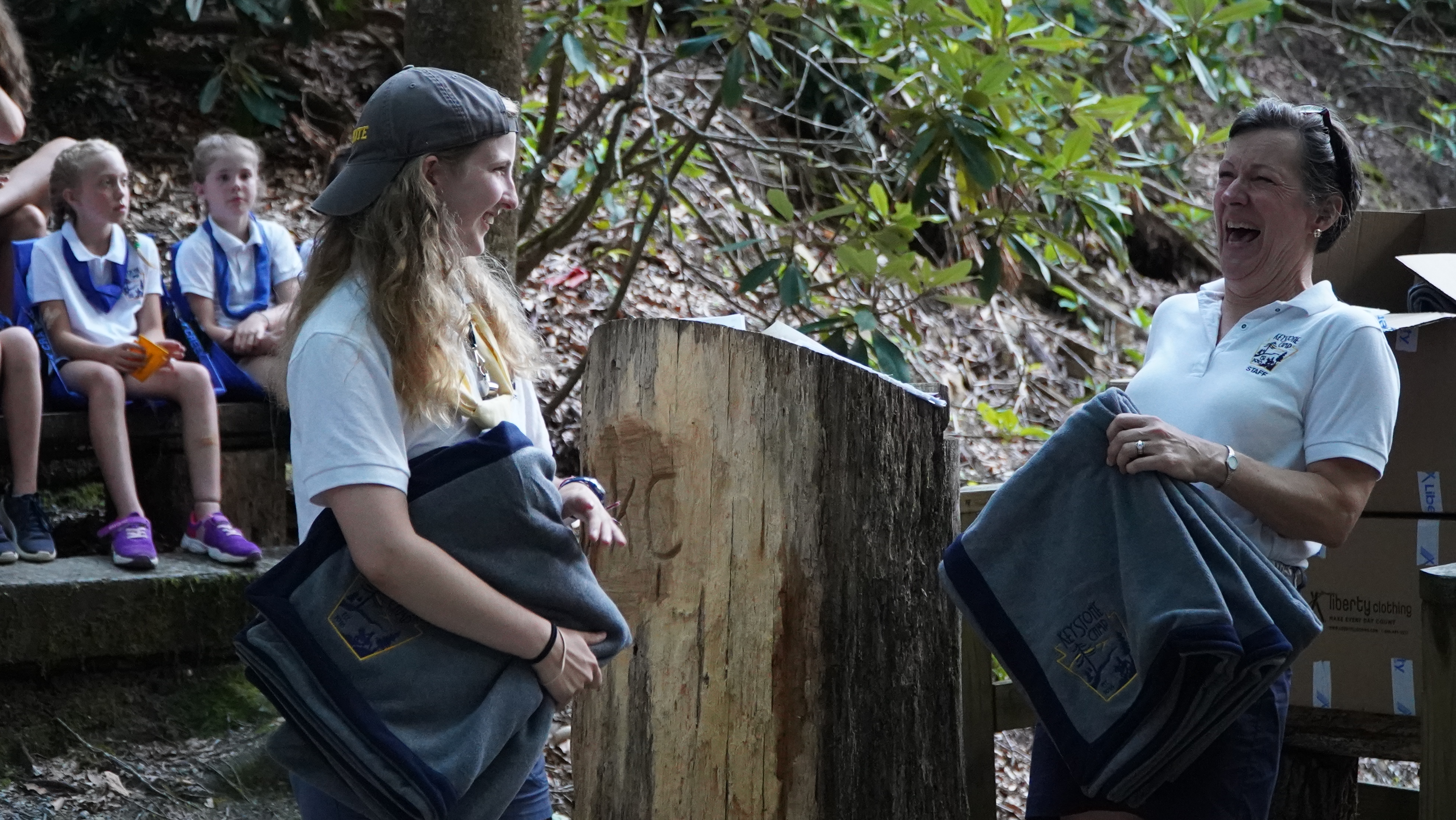 We recognize our 5 year blanket recipients at the first full campfire of each session. This past Sunday we awarded 34 blankets, a stunning number in a single session. This also put us over the 500 mark of 5 year blanket recipients since beginning the tradition in 2007. It was truly a pleasure to see such a large crowd of our 3 weekers recognized. Perhaps the most fun acknowledgement was a counselor who had formerly been a camper. She did not realize this was her 5th summer, and having her name called took her completely by surprise. If you saw the picture of me laughing while holding a blanket, I was waiting for the counselor to make her way down to the podium. We all enjoyed being a part of her surprise.